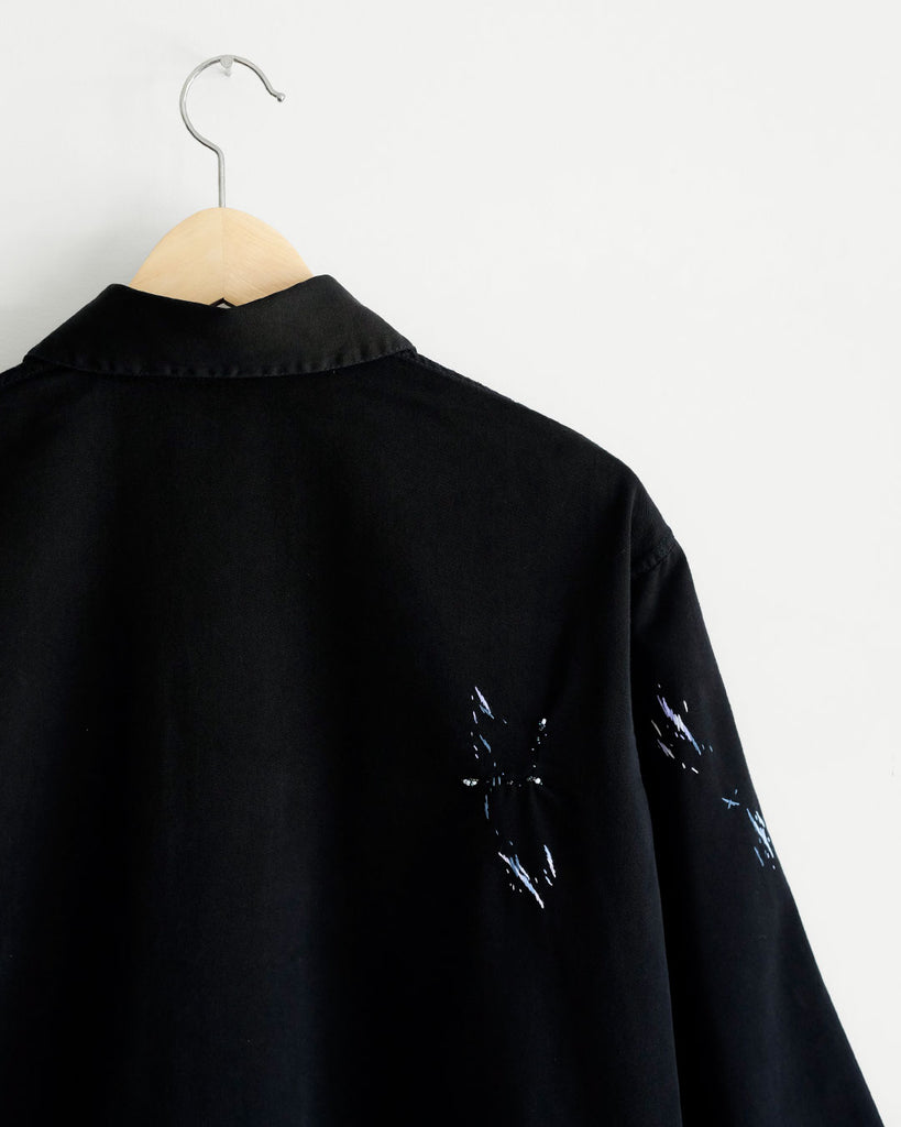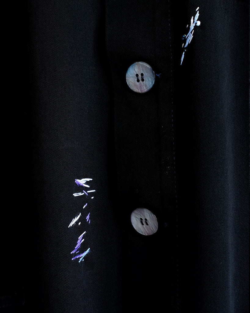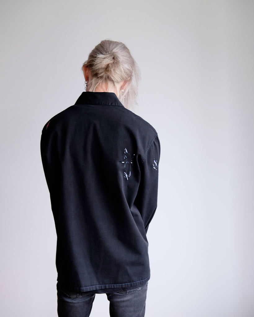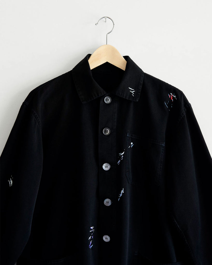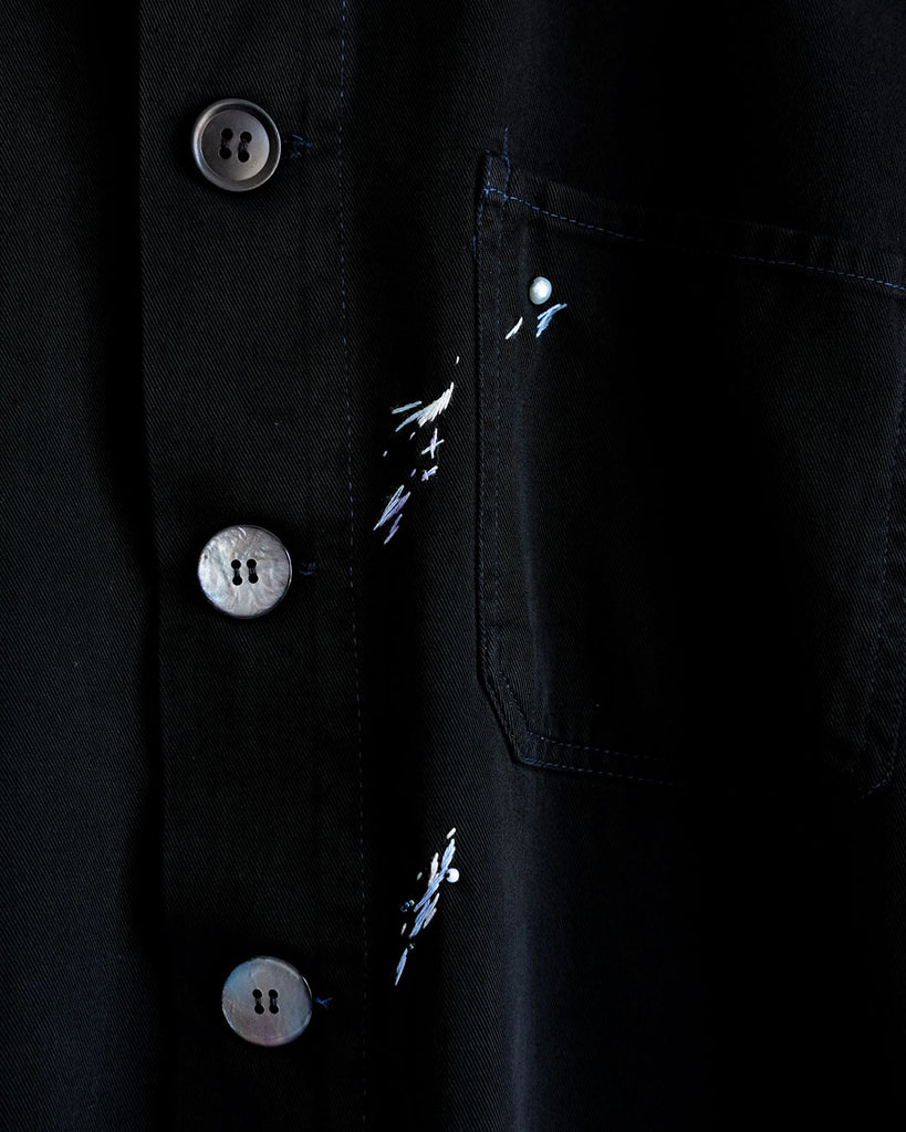 Chores is a collection of eighteen hand-embroidered vintage chore coats, celebrating the beauty of earnest labor. Because each piece is a vintage garment transformed through hand-embroidery, each piece is unique.