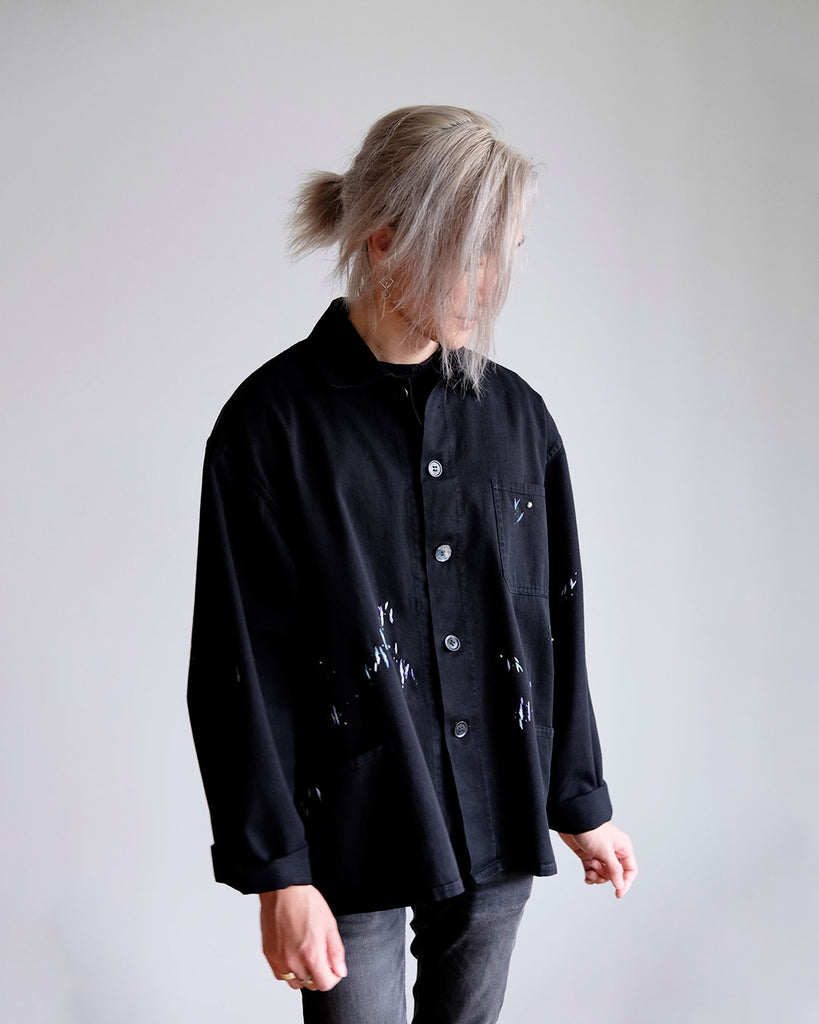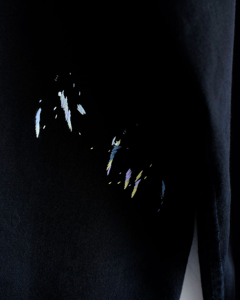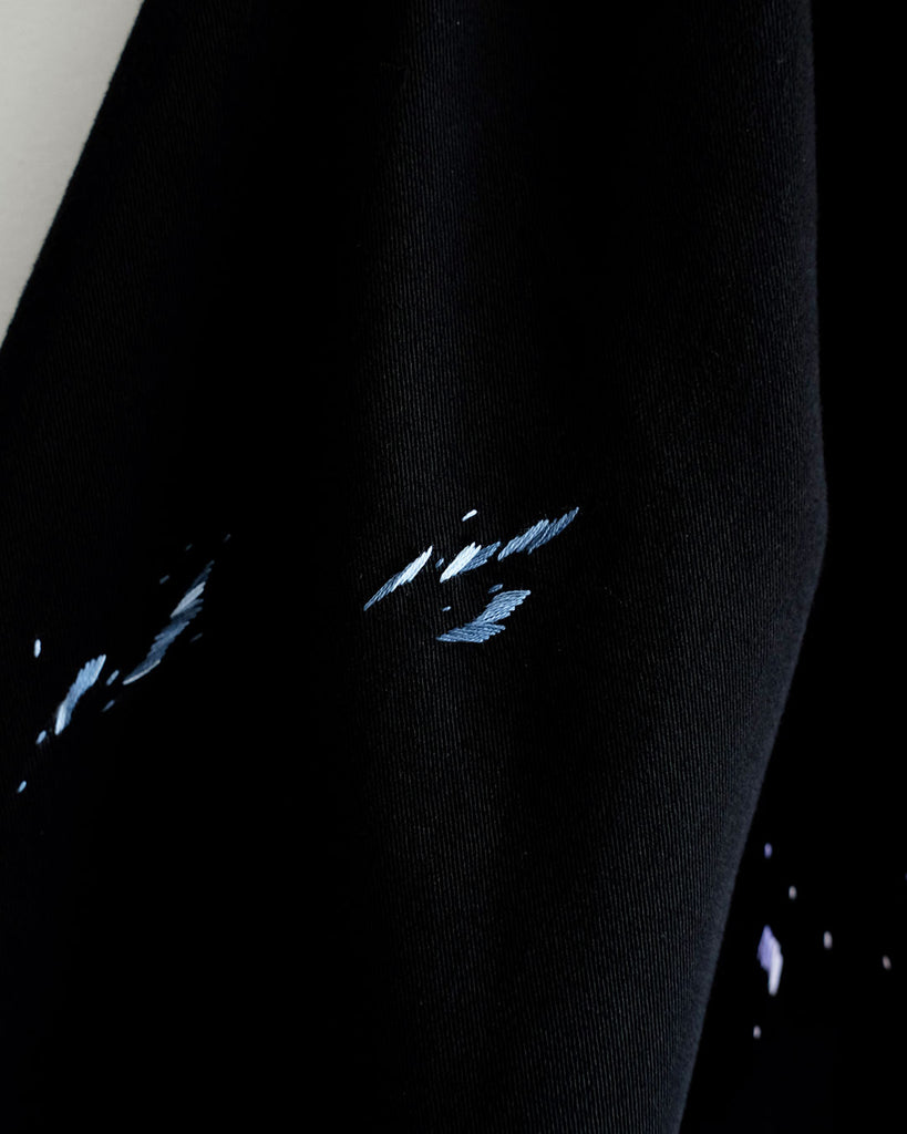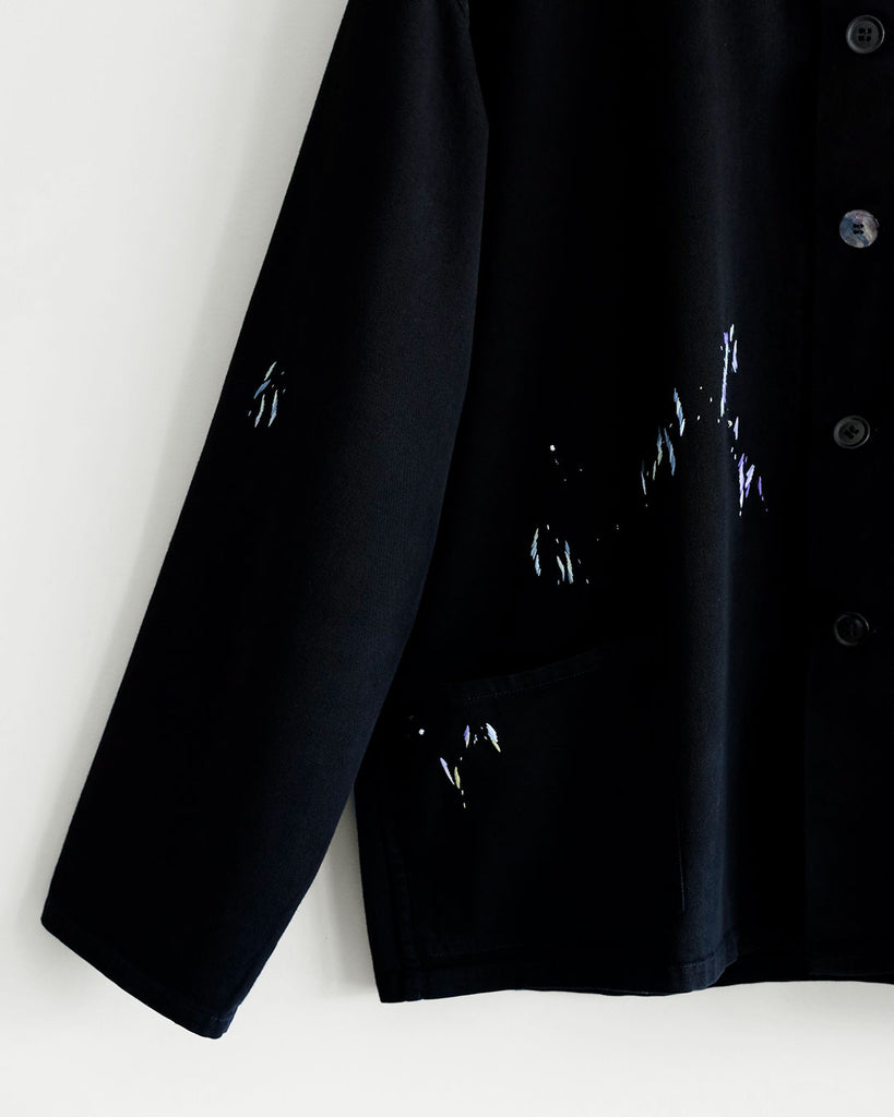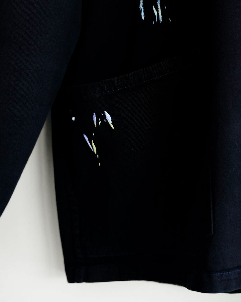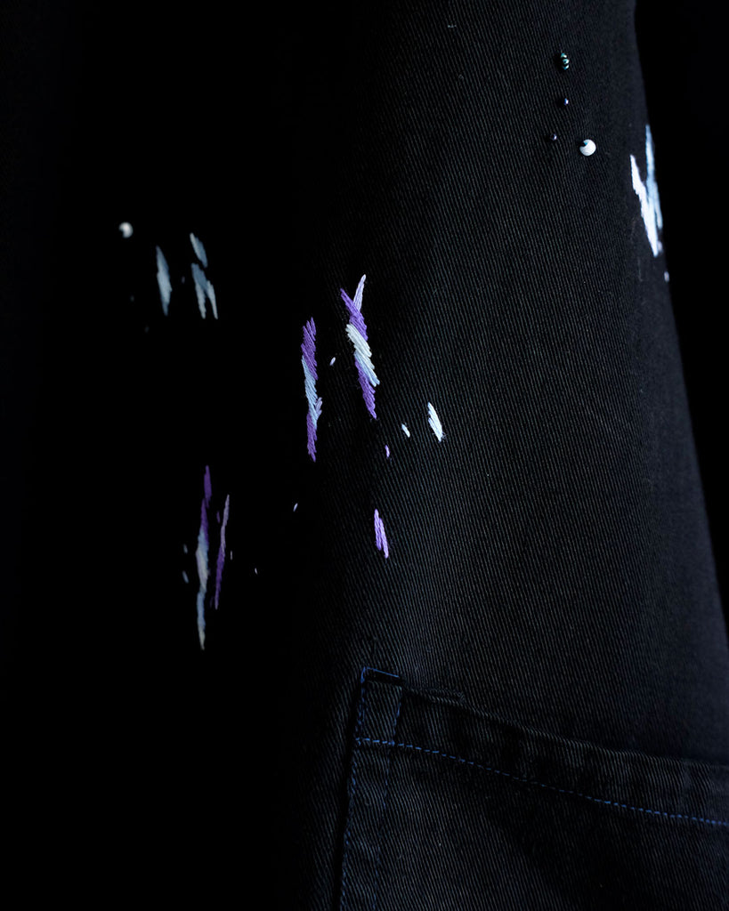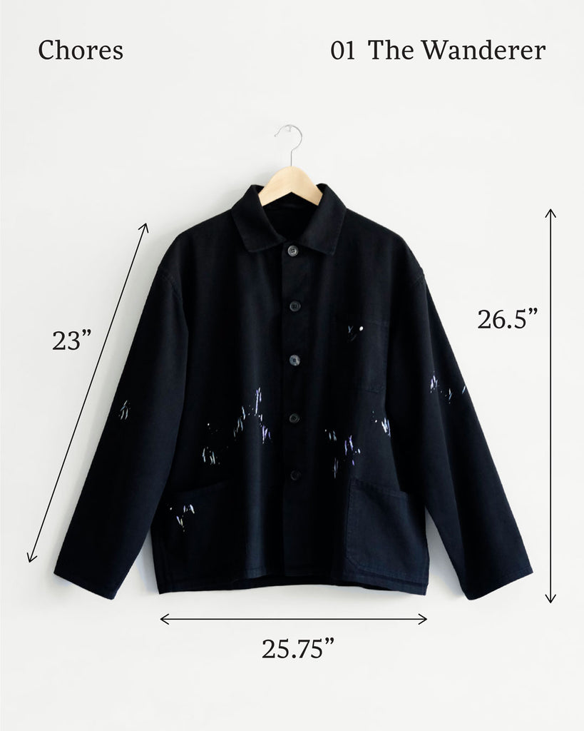 Chores is a collection of eighteen hand-embroidered vintage chore coats, celebrating the beauty of earnest labor. Because each piece is a vintage garment transformed through hand-embroidery, each piece is unique.