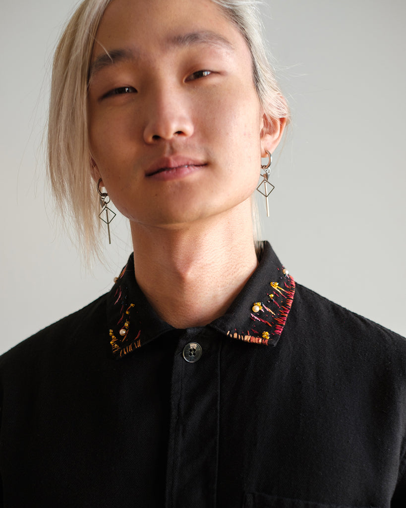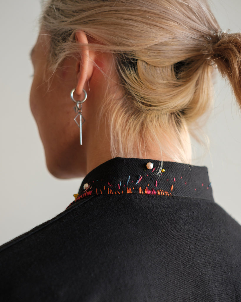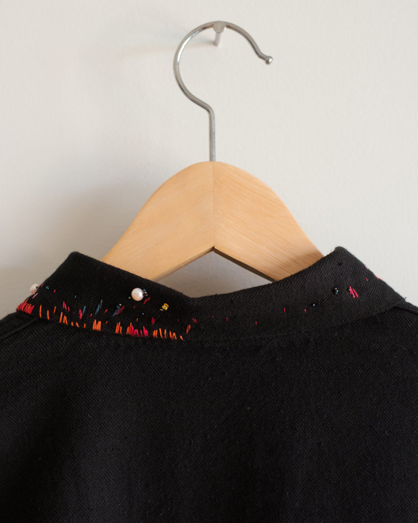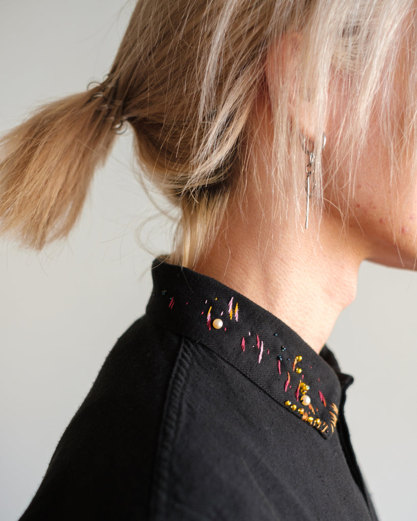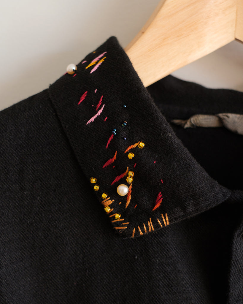 Chores is a collection of eighteen hand-embroidered vintage chore coats, celebrating the beauty of earnest labor. Each piece is a vintage garment transformed through a unique pattern of hand-embroidery, inspired by the unintentional yet beautiful splatters left on an old painting smock.