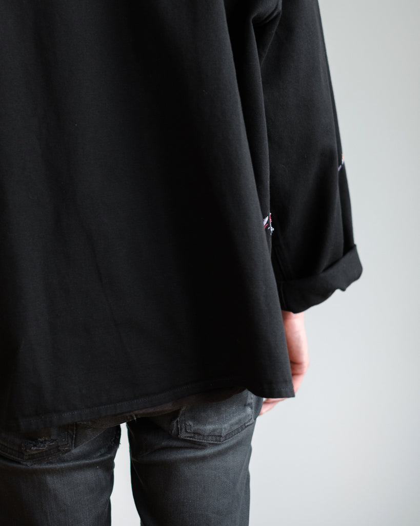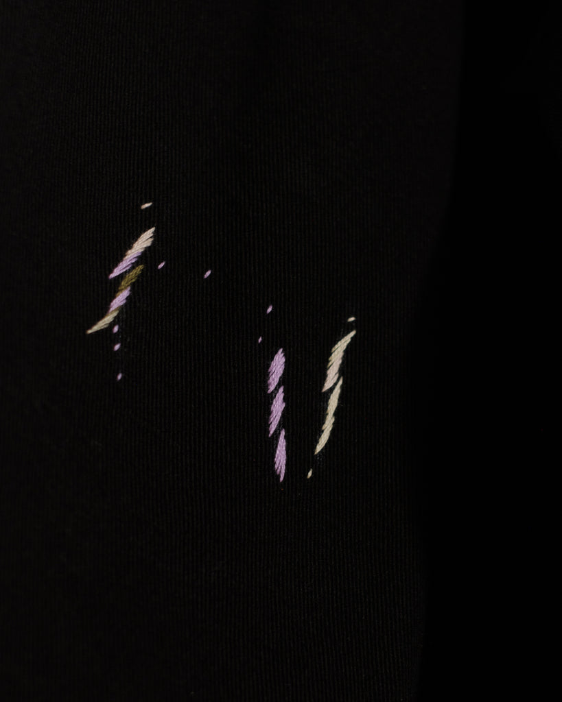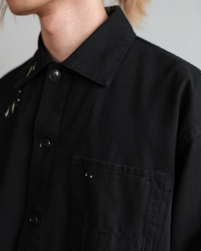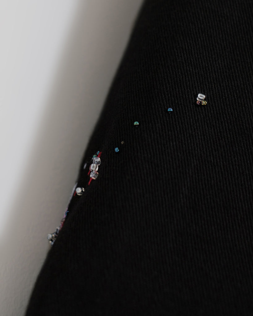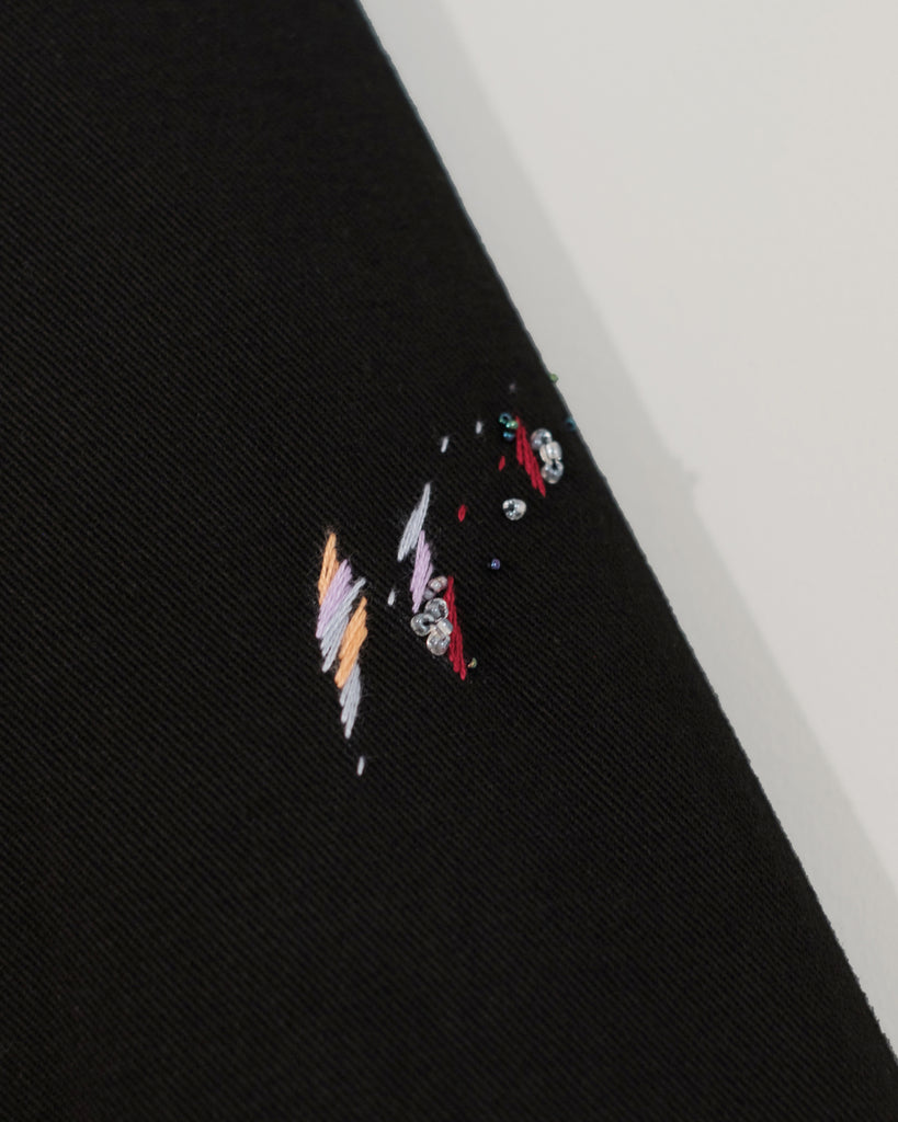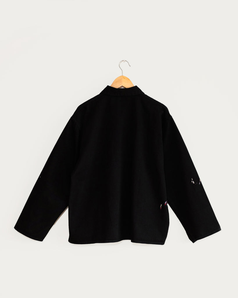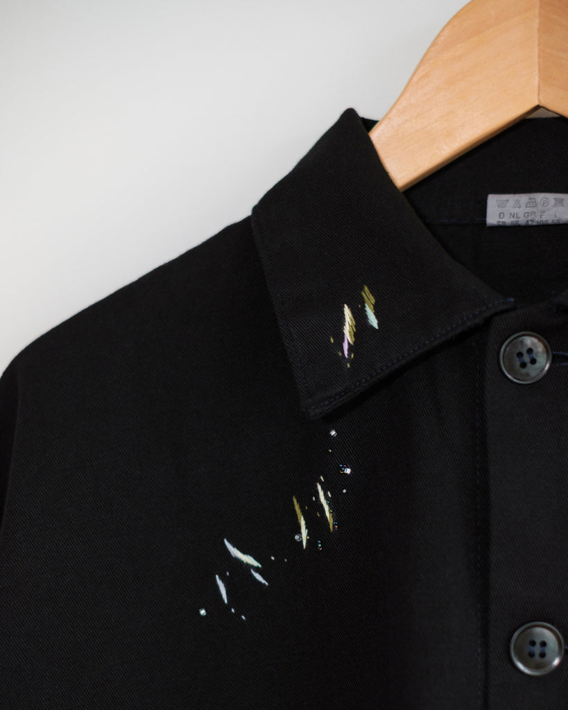 Chores is a collection of eighteen hand-embroidered vintage chore coats, celebrating the beauty of earnest labor. Each piece is a vintage garment transformed through a unique pattern of hand-embroidery and beading, inspired by the unintentional yet beautiful splatters left on an old painting smock.