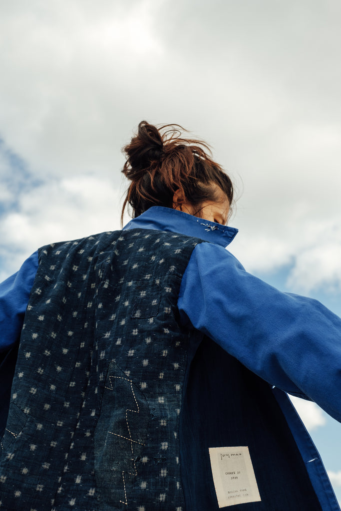 This season contains ten embroidered vintage chore coats with reconstructed linings, patchworked from antique indigo-dyed fabric scraps.