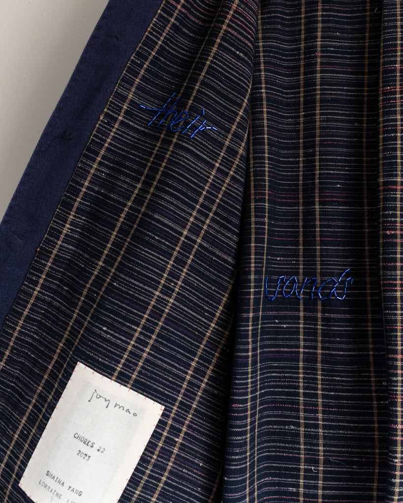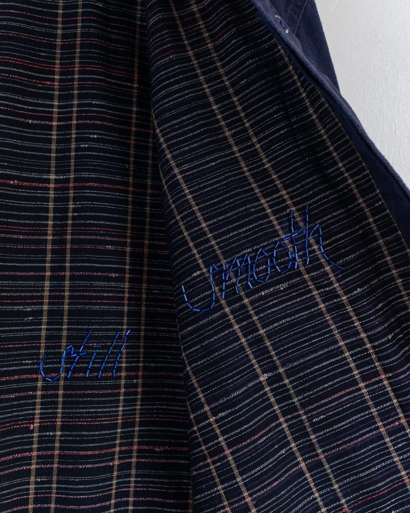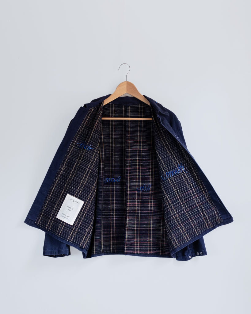 This season contains ten embroidered vintage chore coats with reconstructed linings, patchworked from antique indigo-dyed fabric scraps.