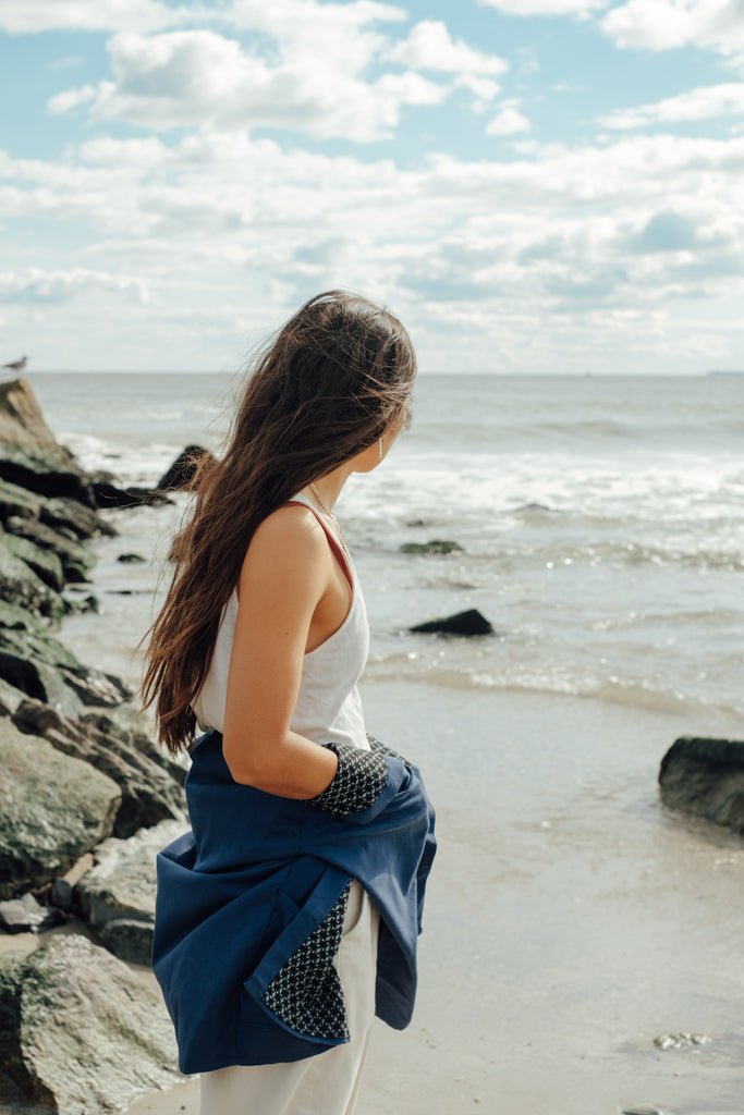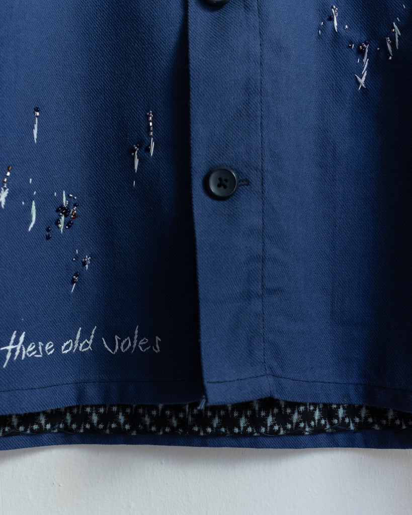 Each coat was embroidered in tandem with a corresponding poem written from a memory of the seaside — the seaside providing a consistent backdrop across shifting eras and emotions. Together, they recollect the ways in which our surroundings can witness, support, or even force changes happening on the inside.