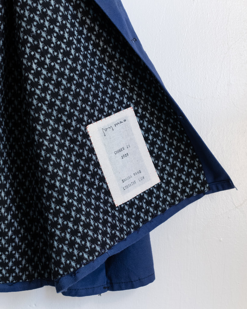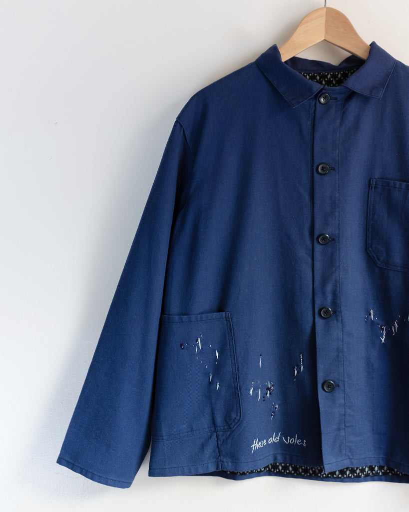 This season contains ten embroidered vintage chore coats with reconstructed linings, patchworked from antique indigo-dyed fabric scraps.