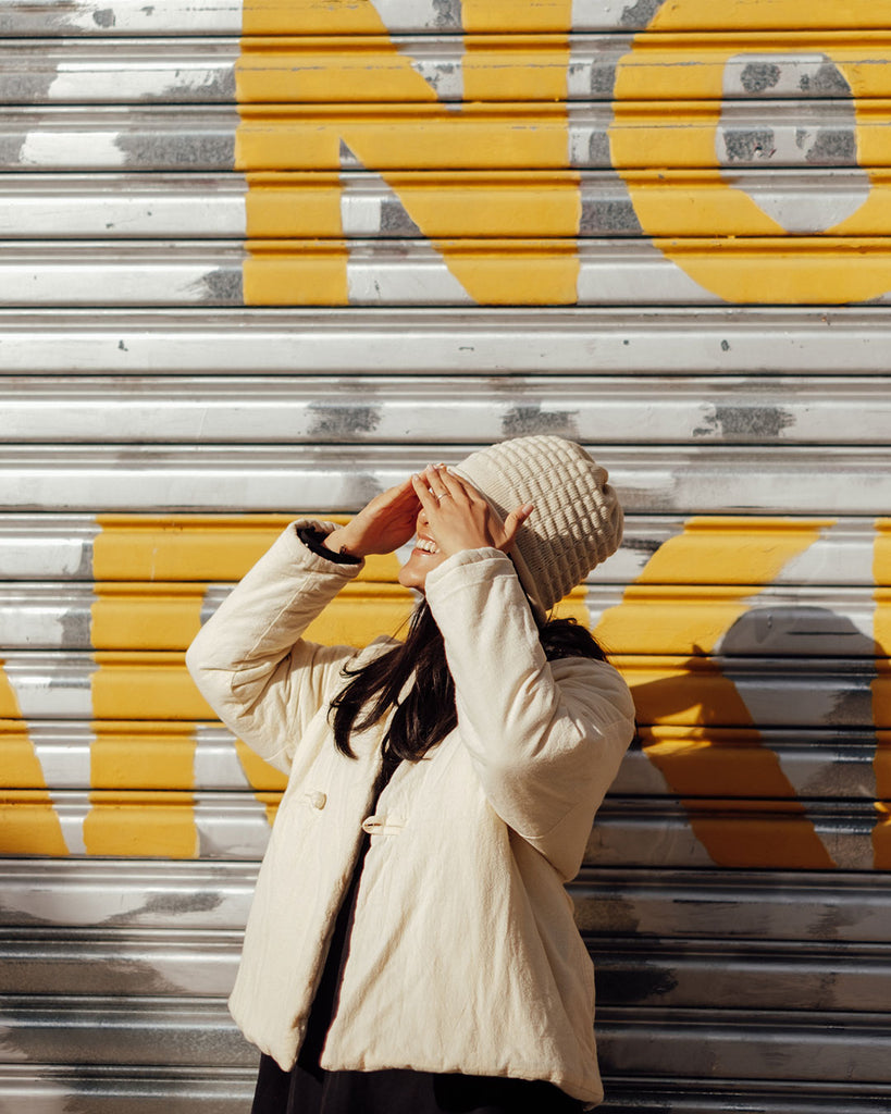 Understated, low-key, yet deliciously textured. Soft columns of rippled wool offer a multi-dimensional pattern to this single-tone cream beanie - all while keeping its wearer warm beneath its knit ridges and rolled hem. The Tanghulu Beanie is an instant classic - or is it an ancient one? If you know you know.