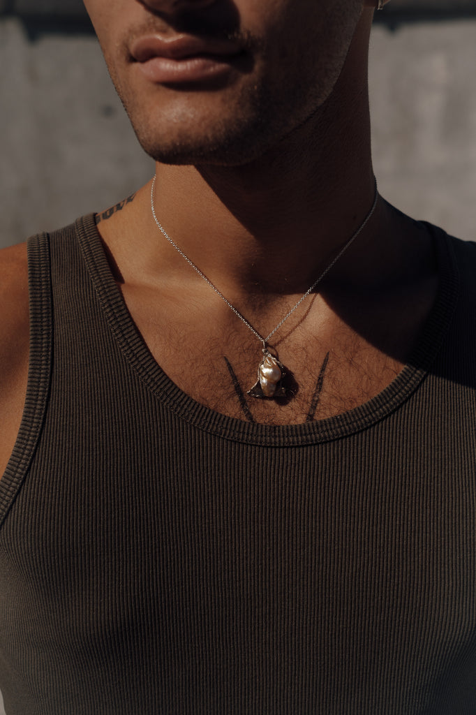 Unique to this season of Chores is a series of silver and blister pearl charms, made by Queens-based sculptor, Nicki Cherry.