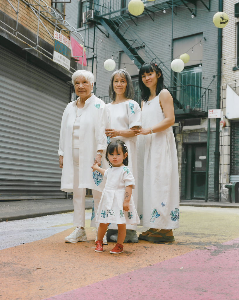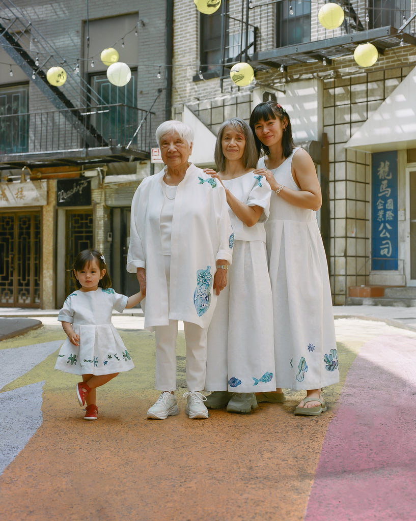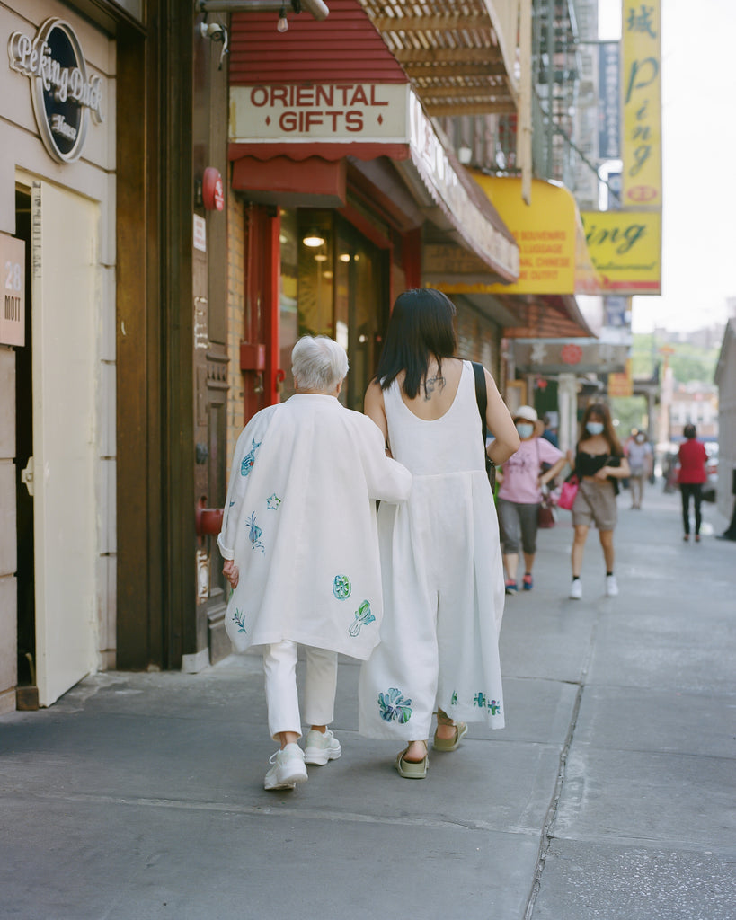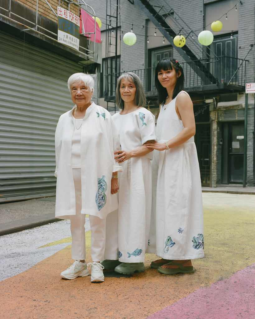 Created in collaboration with Lorraine Lum and the Chinatown community during Joy Mao’s 2022 Artist Residency at The W.O.W. Project, the collection uses clothing-making as a vessel for community care.